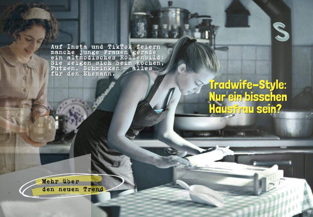Gerade auf TikTok und Insta voll im Trend: „Tradwife“ sind Frauen, die ihr Leben wie in den 50ern inszenieren. Kochen, Putzen, Schminken für den Ehemann, alles in Pastell und mit Retro-Filter.