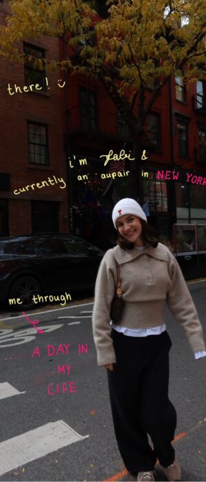 Das spiegelt sich auch im Alltag eines Au-pairs in New York wider. Fabienne hat für unsere Redaktion ein kleines Fototagebuch zusammengestellt. Ihre Bilder und auch Ihr Instagram Account zeigen einen sorgfältig strukturierten Alltag in einer gut etablierten Familie in New York. Morgens beginnen die Tage in hellen, stilvollen Räumen, gefolgt von liebevoll zubereiteten Frühstücksboxen für die Kinder. Kleine Rituale ziehen sich durch den Tag: kurze Spaziergänge durch die Nachbarschaft, Momente für den eigenen Kaffee oder Matcha, Sport auf dem Laufband, bevor die Kinder abgeholt werden. Nachmittags stehen gemeinsames Spielen, Scooterfahren und kreatives Malen auf dem Programm. Abends endet der Tag entspannt.