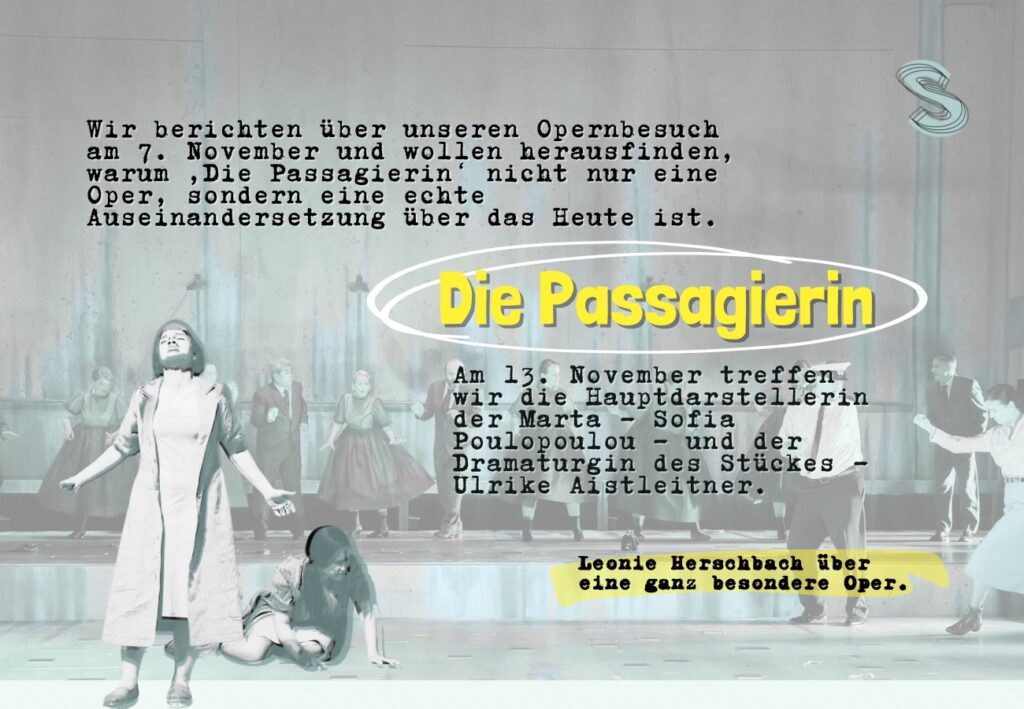 Vertreter:innen des Standpunkt-Teams können am 13. November Gespräch mit der Hauptdarstellerin der Marta – Sofia Poulopoulou – und der Dramaturgin des Stückes – Ulrike Aistleitner teilnehmen und nehmen euch mit. Wir berichten, was wir in der Aufführung am 7. und 20. November gesehen und gehört haben – und warum ‚Die Passagierin‘ nicht nur eine Oper, sondern eine echte Auseinandersetzung über das Heute ist.
