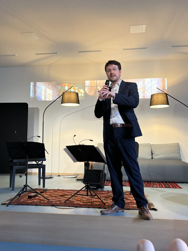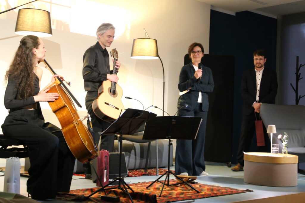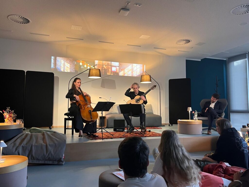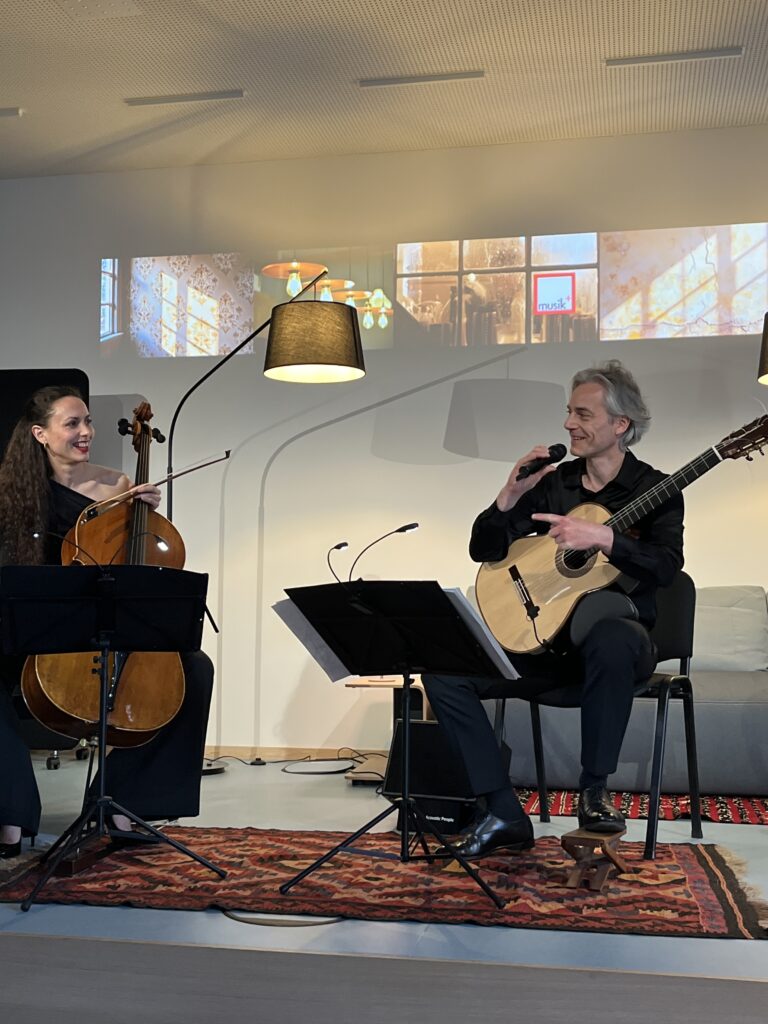 Und dann geht es los. Musik, Gespräch, Nähe. Keine Distanz, kein klassisches Bühnengefühl. Mittendrin sitzt Javier Álvarez Fuentes, der das Ganze wie ein echtes Gespräch lenkt. Nach dem Konzert wirkt er selbst noch bewegt.