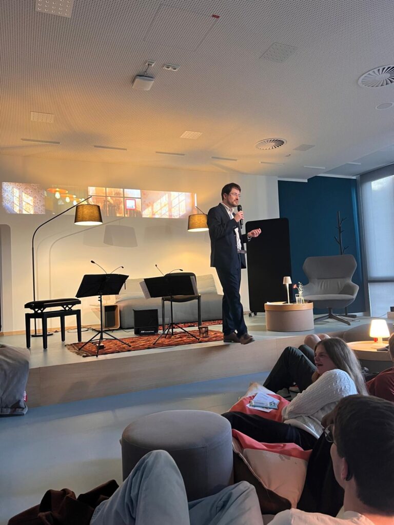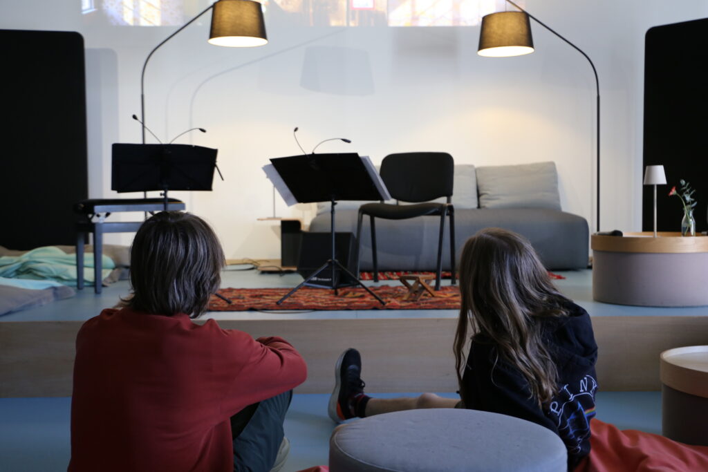 Das Wohnzimmerkonzert der musik+ Reihe des Vereins der Musikfreunde e.V. im Wandelsaal der Zentralbibliothek in Mönchengladbach hat genau das geliefert, was viele vorher nur gehofft haben und dann doch ein bisschen mehr. Zwischen Sitzecken, warmem Licht und diesem Gefühl, dass gleich etwas passiert, was man so nicht jeden Tag erlebt, hat sich der Raum langsam gefüllt. Redakteurinnen und Redakteure vom Standpunkt Team waren mittendrin. Sie haben den Wandelsaal in ein Wohnzimmer verwandelt, Fotos und Videos gemacht und Stimmen eingefangen – vor, während und nach dem Konzert.