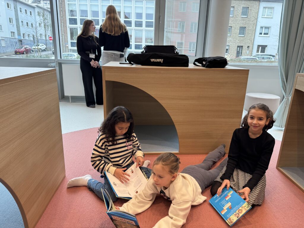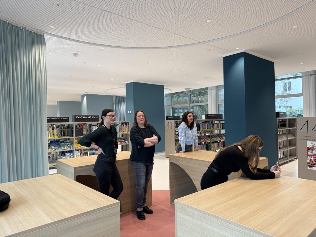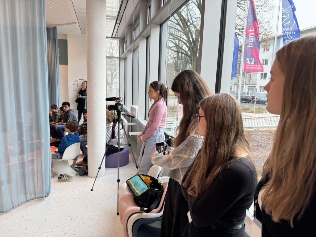 Drei Praktikantinnen der MedienWerkstatt in der Stadtbibliothek sprechen über ihre ganz persönlichen Leseerfahrungen und darüber, warum Geschichten im Kopf oft stärker wirken als jeder Bildschirm. Farida, Caroline und Janina haben sich mit dem Thema Lesen beschäftigt, weil sie als Praktikantinnen der MedienWerkstatt in der Stadtbibliothek aktuell mehrere Veranstaltungen rund um das Thema Lesen redaktionell begleiten. Dazu gehören unter anderem die Aktion „Lesezeichen“ sowie der Workshop „iPad-Rallye“ mit einer Grundschulklasse unter der Leitung der Medienpädagogin Sabine Kainth. Im Gespräch tauschen sie sich über ihre eigenen Leseerfahrungen aus und darüber, welche Bedeutung Lesen für sie früher und heute hat.